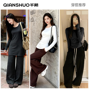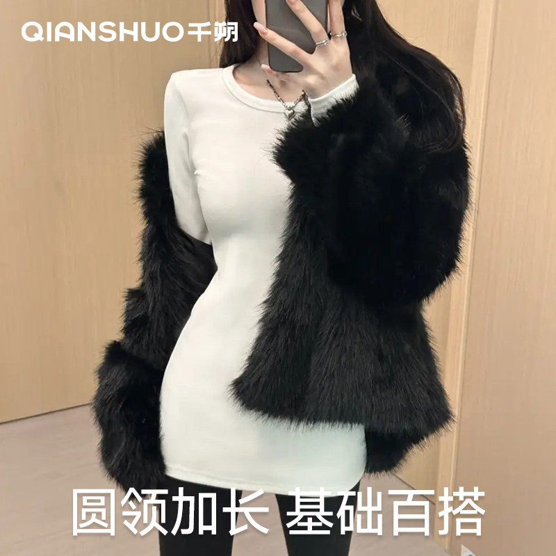 上衣 T恤女秋冬内搭遮屁股磨毛加绒修身 千朔正肩包臀中长款 打底衫