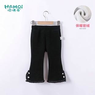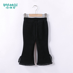 小个子喇叭裤 300斤大码 女美式 胖mm黑色弹力加绒微喇牛仔裤 子 女装