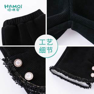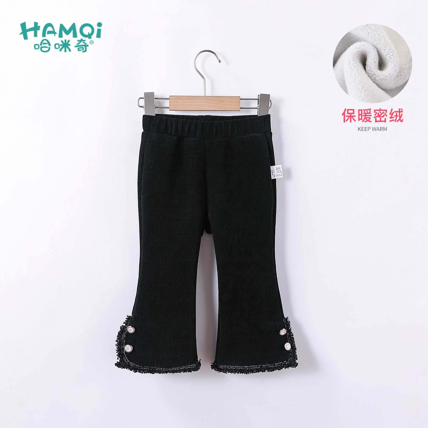 美式 直筒加绒裤 蝴蝶贴布阔腿休闲裤 胖mm显瘦卫裤 子 女秋冬新款 大码