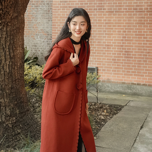 ArguE 高级外套 CulturE贵气红钻设计感廓形垫肩羊毛毛呢大衣长款