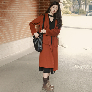 过膝无羊绒呢子风衣外套韩版 毛呢大衣男中长款 宽松落肩 新款 秋冬季