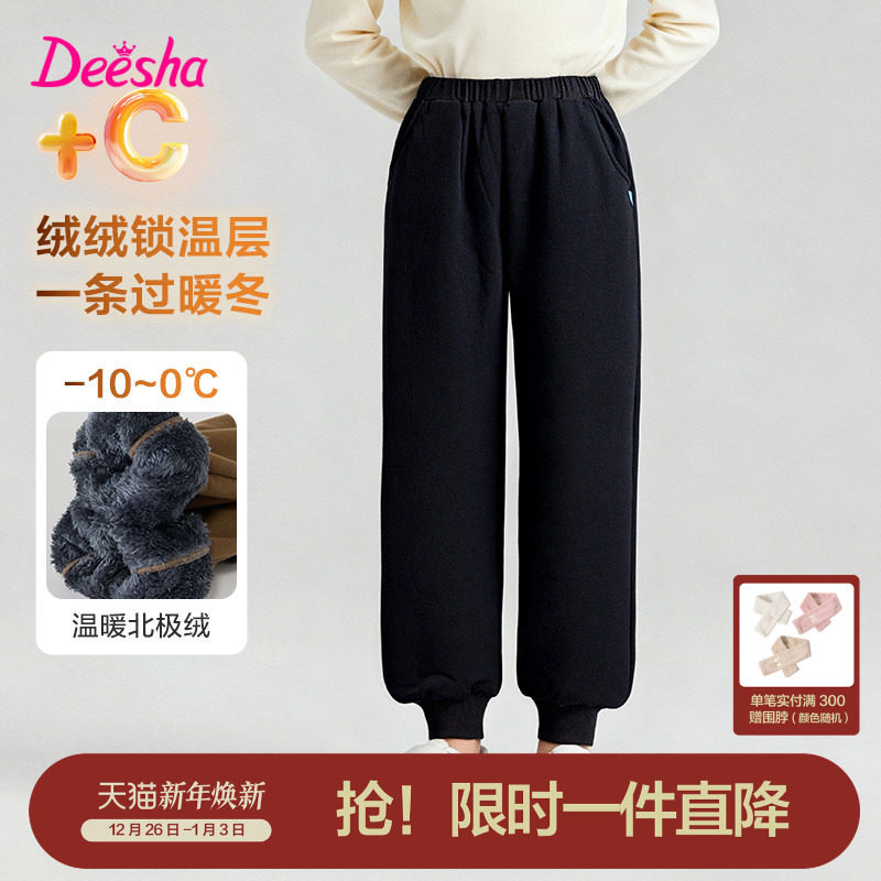 保暖直筒裤 加绒加厚雪尼尔阔腿裤 宽松妈妈大码 新款 子 女2025秋冬季