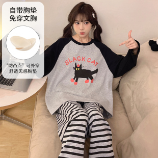 家居服套装 晚眠带胸垫睡衣女款 秋冬季 套头卡通2026年新款 春秋长袖