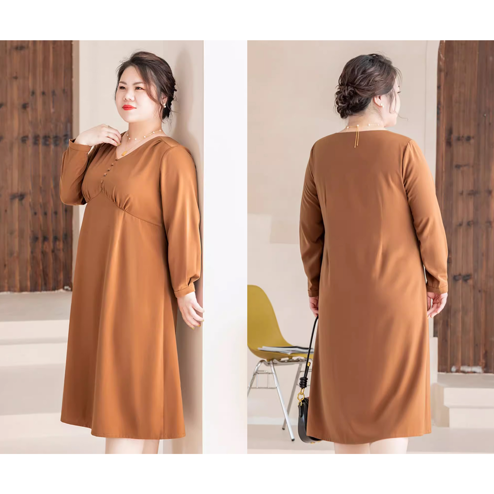 胖mm200斤法式 女装 气质V领连衣裙女 大码 美丽客栈高端定制2025新款