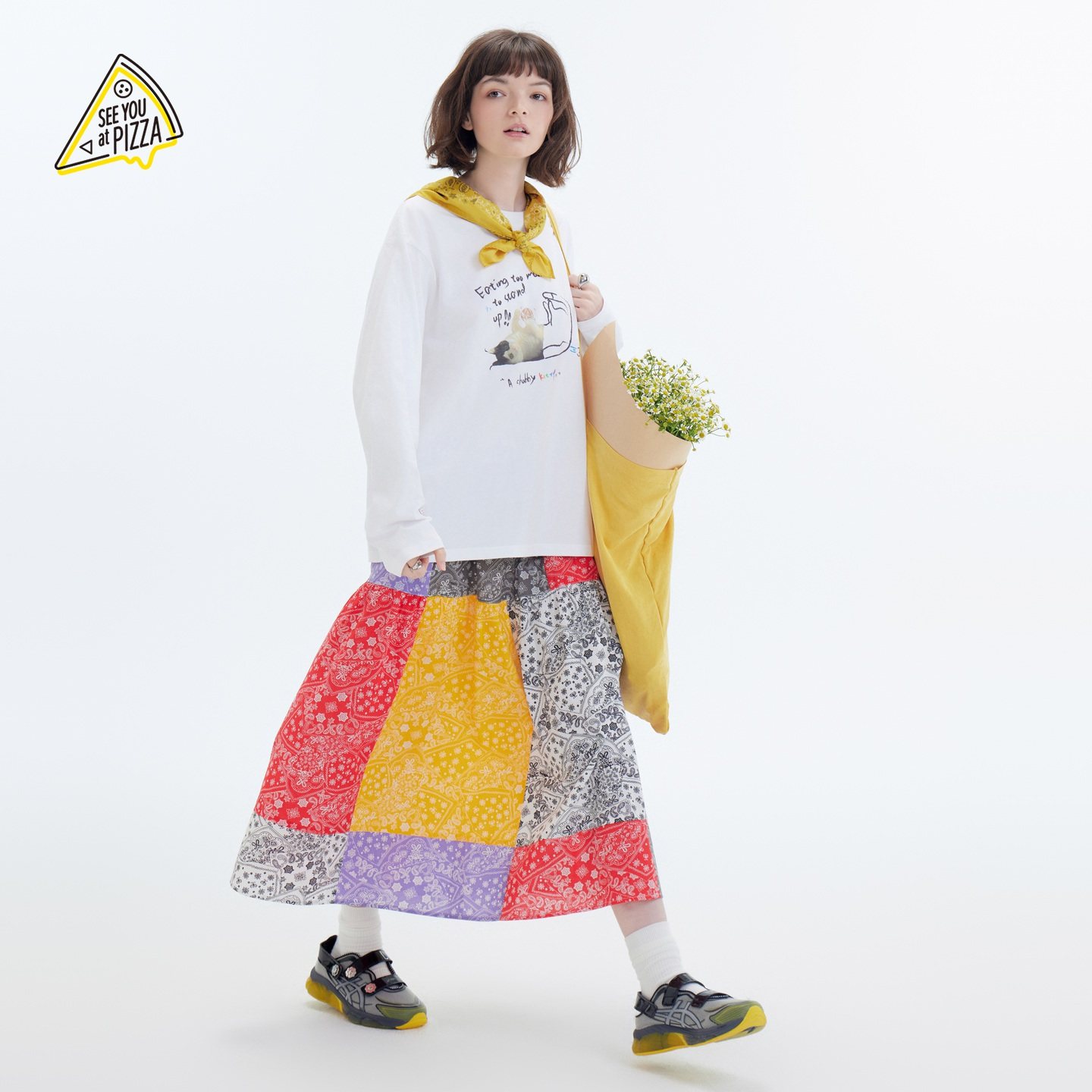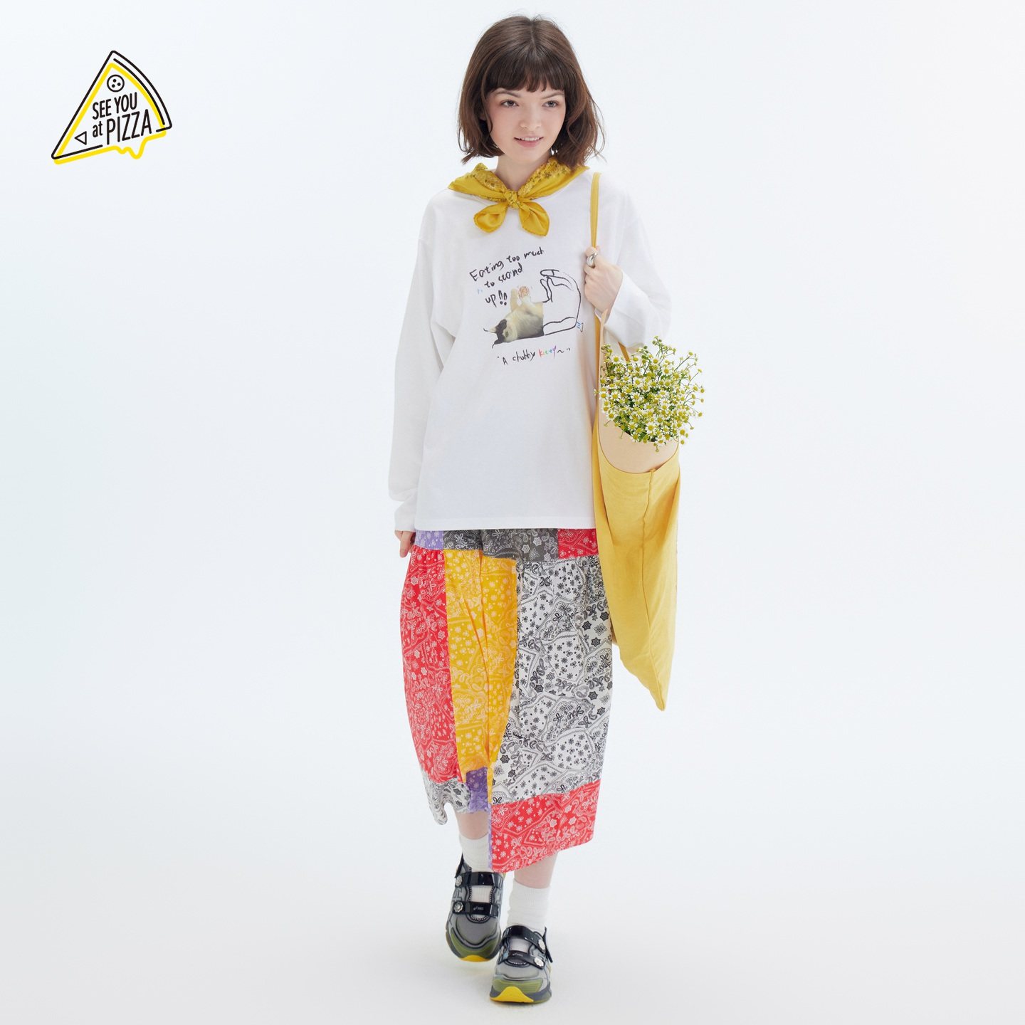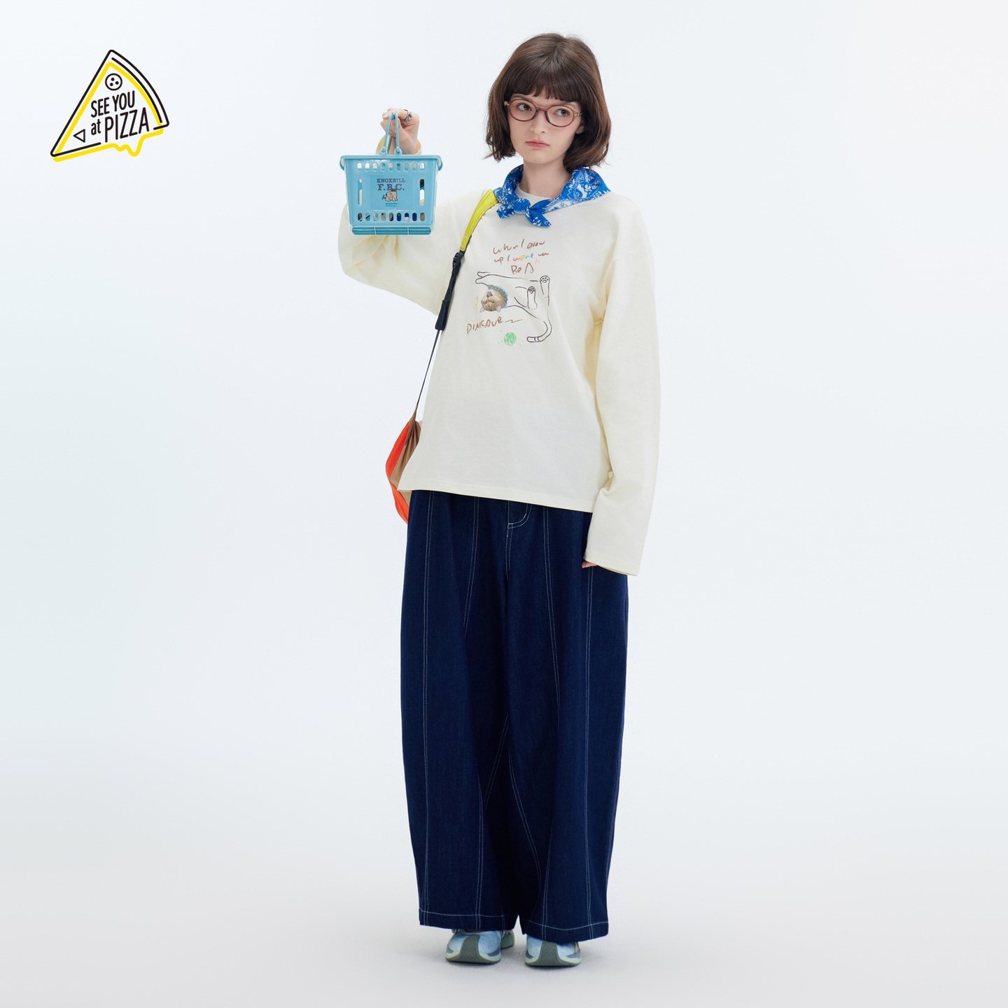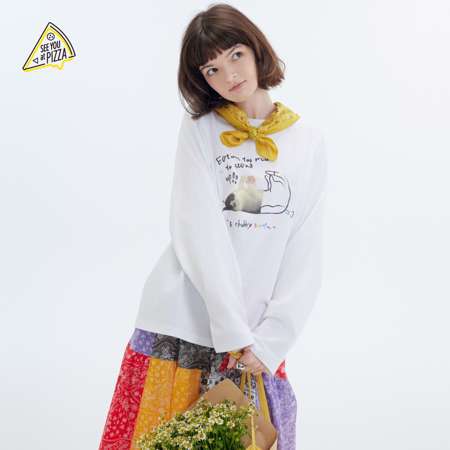 YOU 日常简约可爱长袖 T恤2025秋冬新款 上衣602724 PIZZA SEE