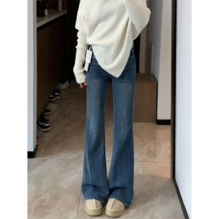 梨型身材微喇弹力牛仔裤 子 女秋冬加绒胖妹妹mm高腰显瘦直筒喇叭裤