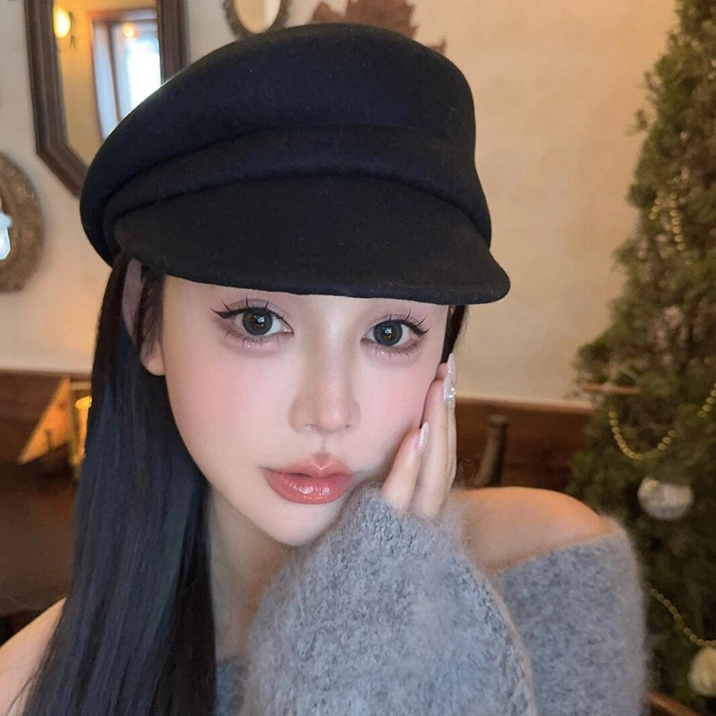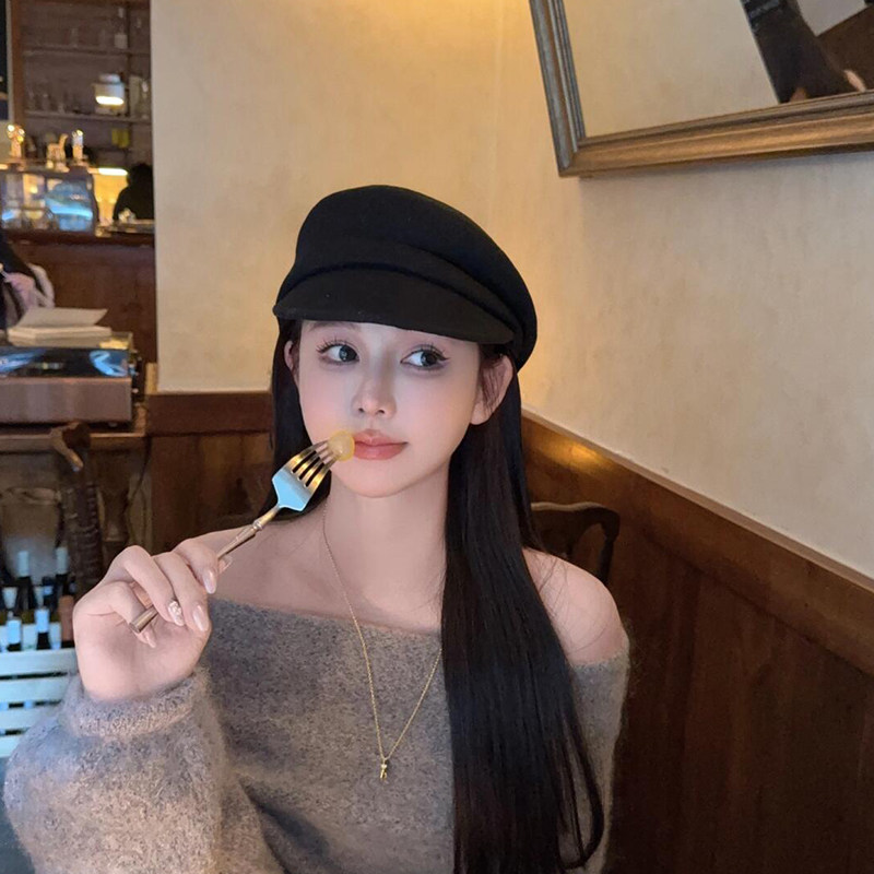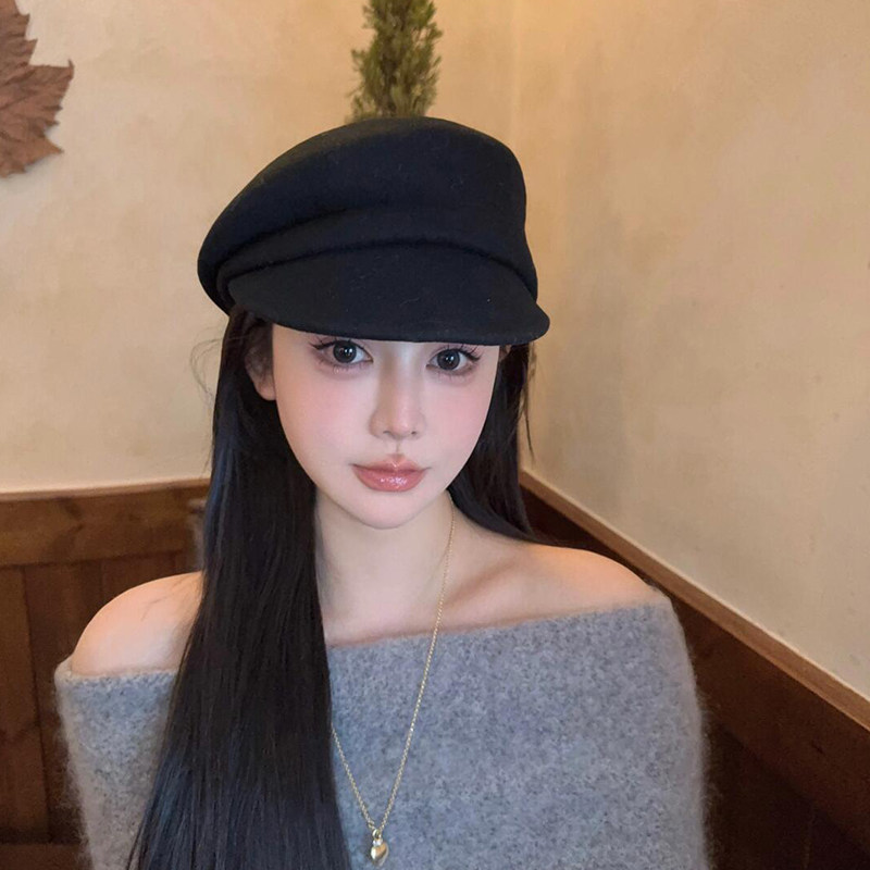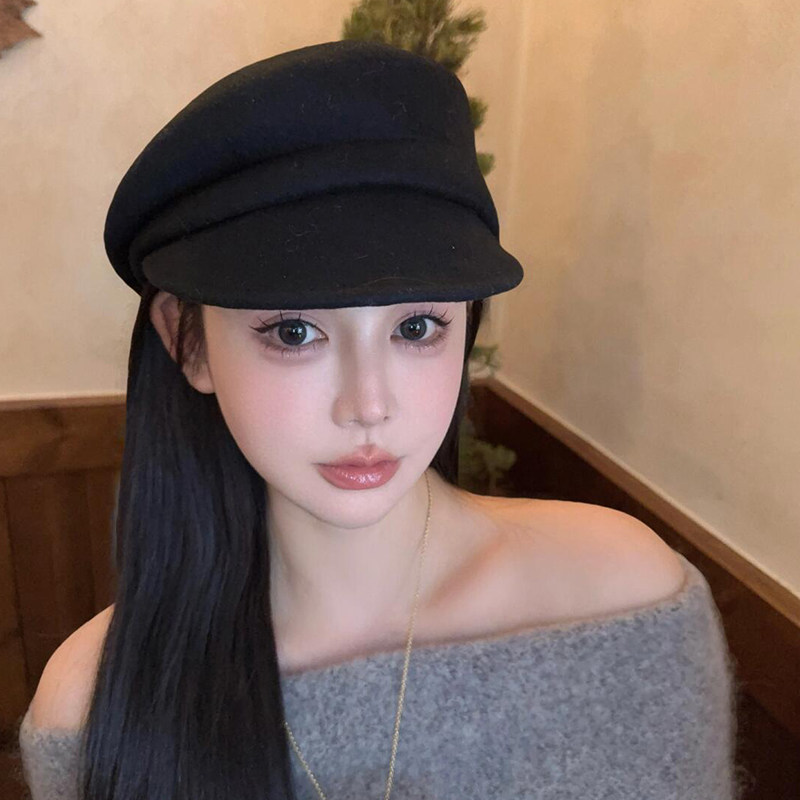 黑色贝雷帽子羊毛复古日系文艺女秋冬显脸小鸭舌帽网红法式 八角帽
