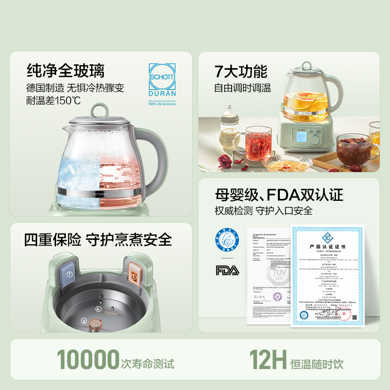 新款 养生壶家用智能多功能玻璃电加热水壶煮茶器花茶杯烧水煎药壶
