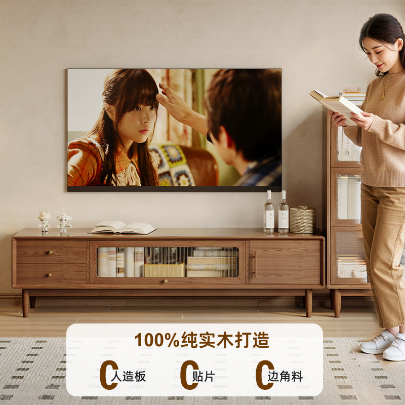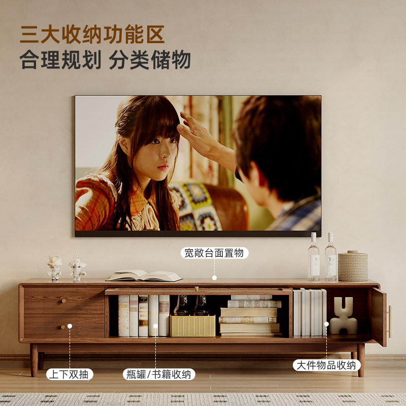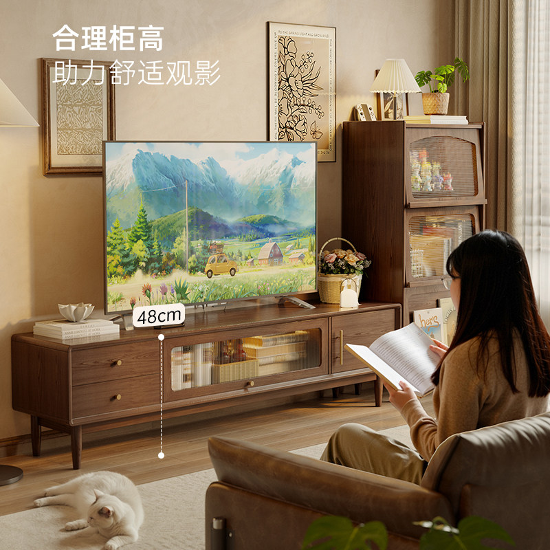 yamoo北美黑胡桃木电视柜北欧简约全实木电视机柜家用客厅视听柜