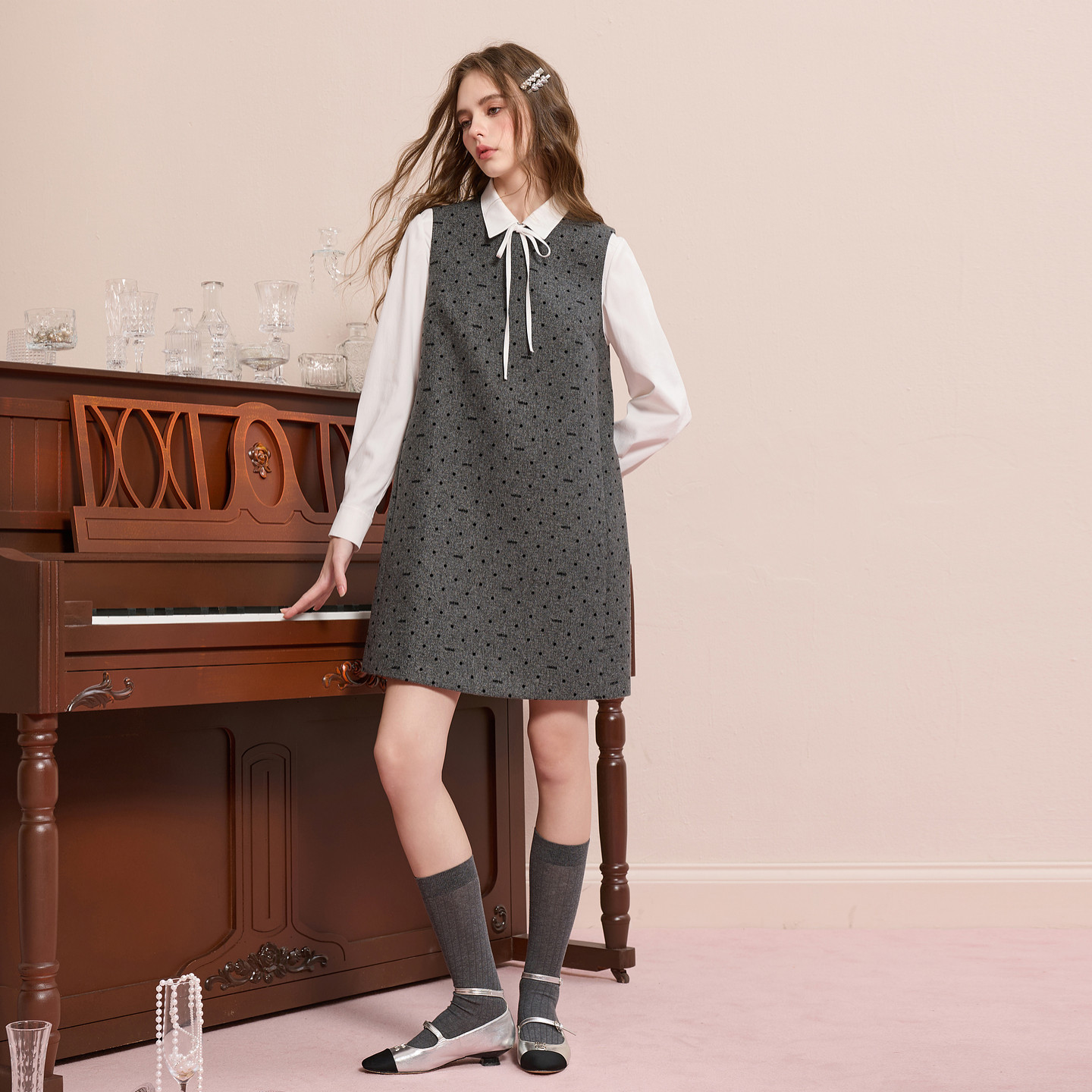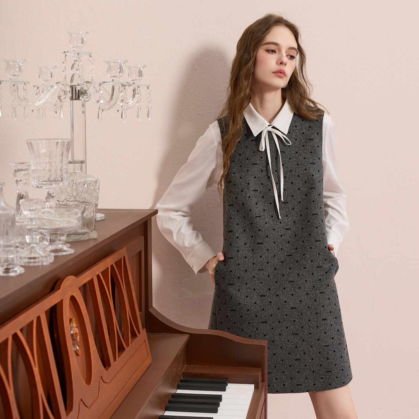背心裙叠穿短裙M女 波点植绒连衣裙无袖 三彩2025冬季 新款
