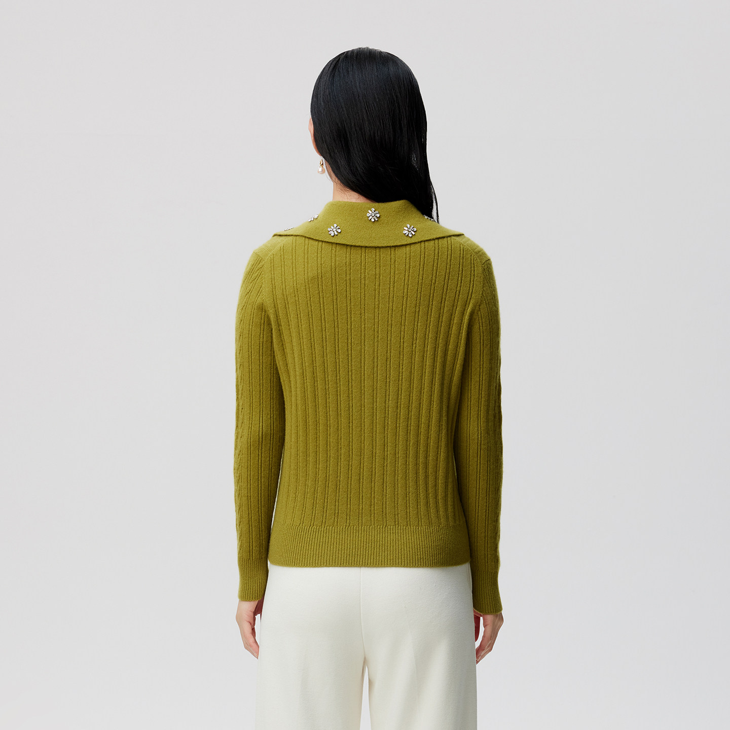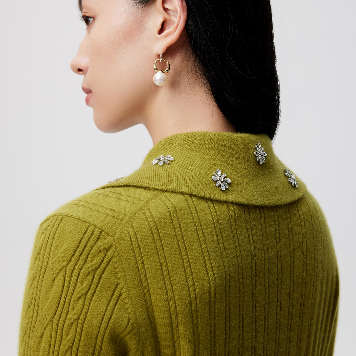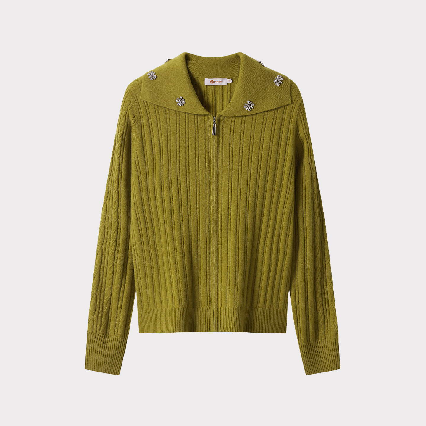 外套 饰羊绒拉链开衫 皮皮狗秋冬新款 翻领抽条绞花加厚手工钉钻装