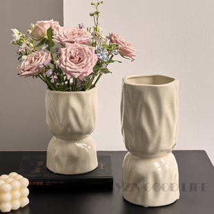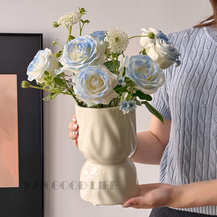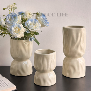 法式 饰花器摆件高级感 复古简约陶瓷花瓶奶油风客厅餐桌水养插花装