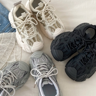 登山鞋 喜叔黑色小众厚底增高老爹鞋 复古休闲运动鞋 春季 女2026新款