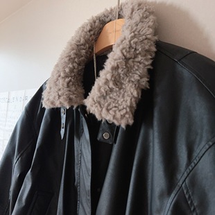皮衣外套休闲复古风女中长款 领大衣 休闲复古风皮草外套加厚西装