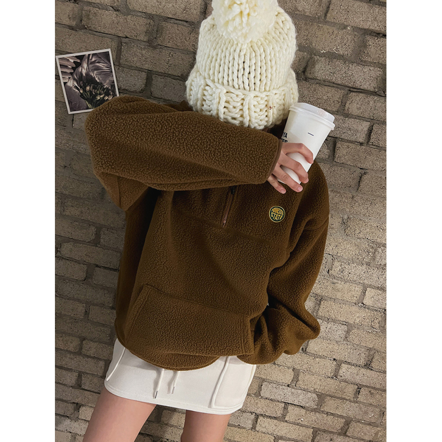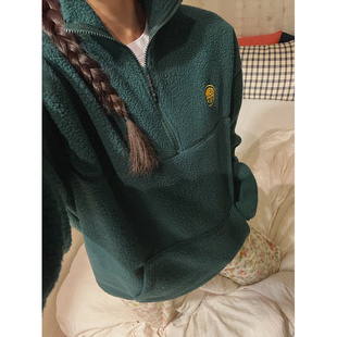 鬼鬼家正品 girl保暖减龄摇粒绒半拉链立领套头卫衣 韩代东大门冬