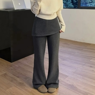 宽松显瘦休闲裤 羊毛针织阔腿裤 高腰抽绳直筒裤 加长拖地裤 女秋冬季