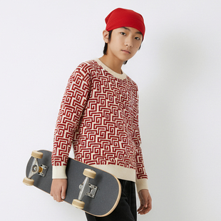 男女同款 MQD儿童新年红色毛衣2025新年亲子款 马年春晚联名