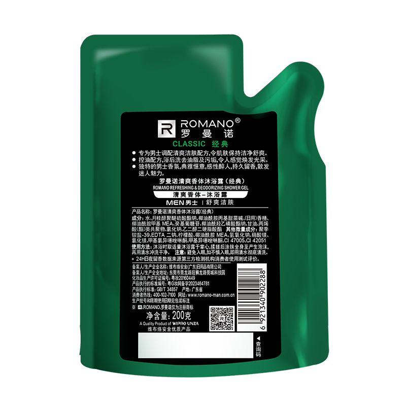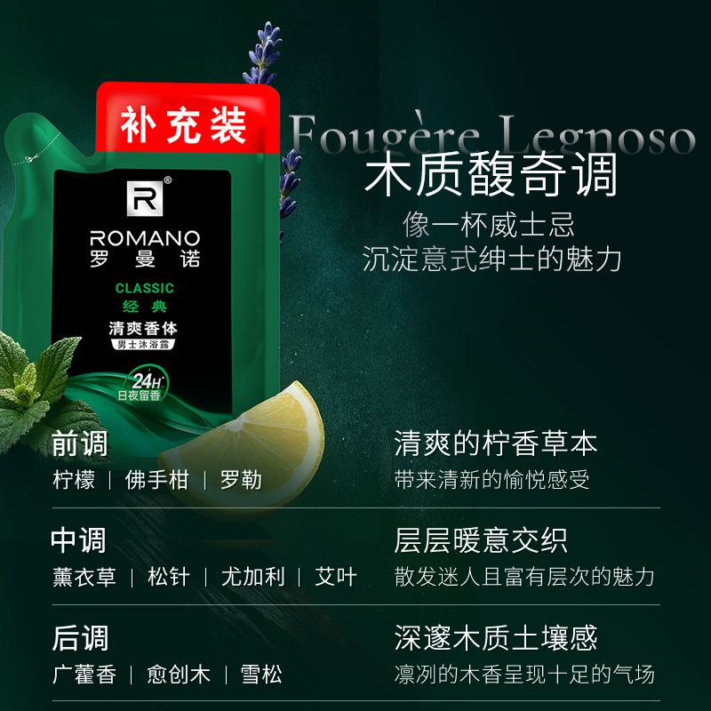 实惠家庭 留香补充装 罗曼诺沐浴露经典 袋装