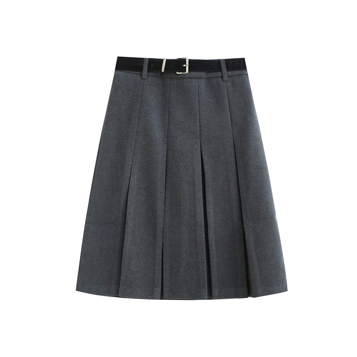 不退不换 2件5折 系高腰显瘦毛呢百褶裙半身裙A字裙中裙 清仓