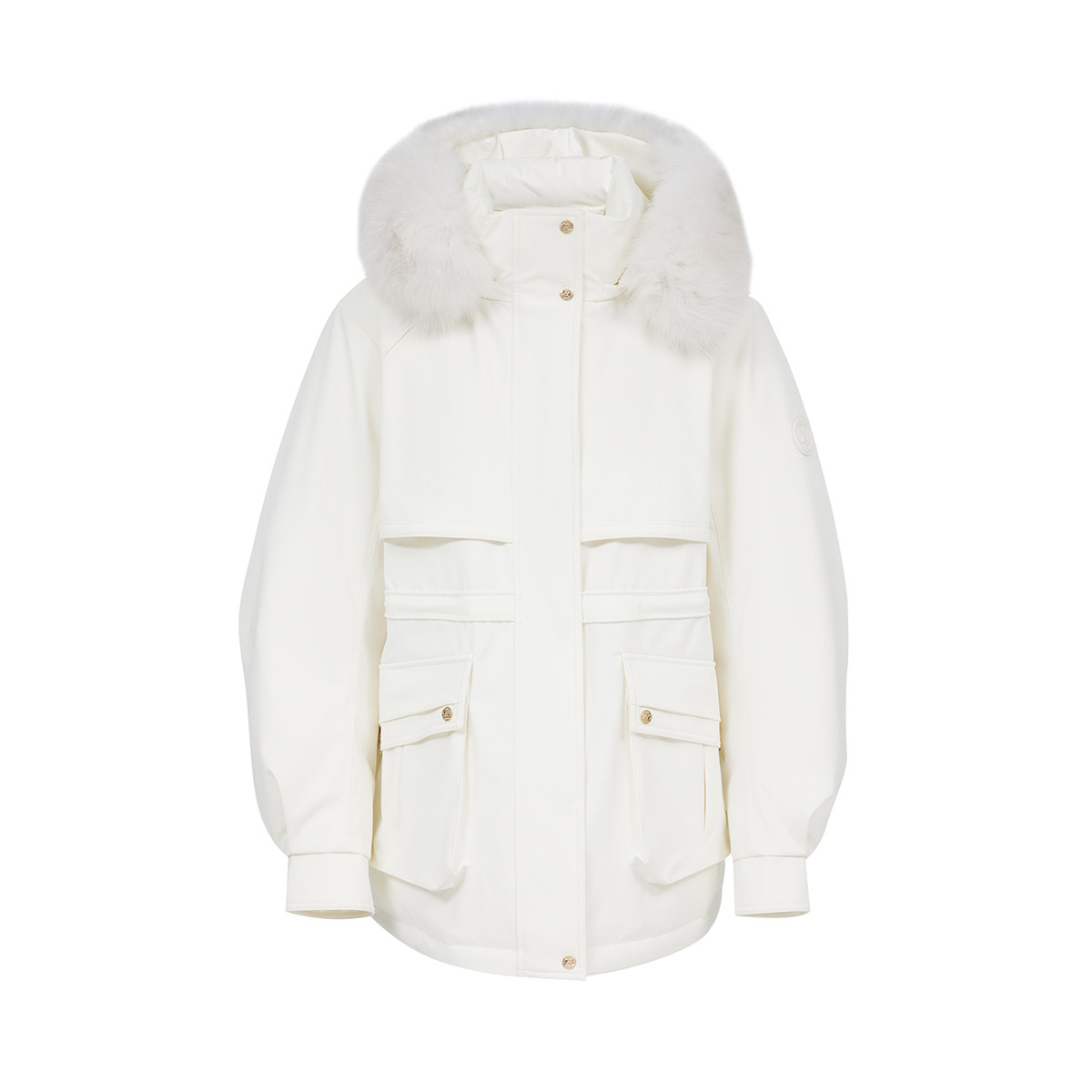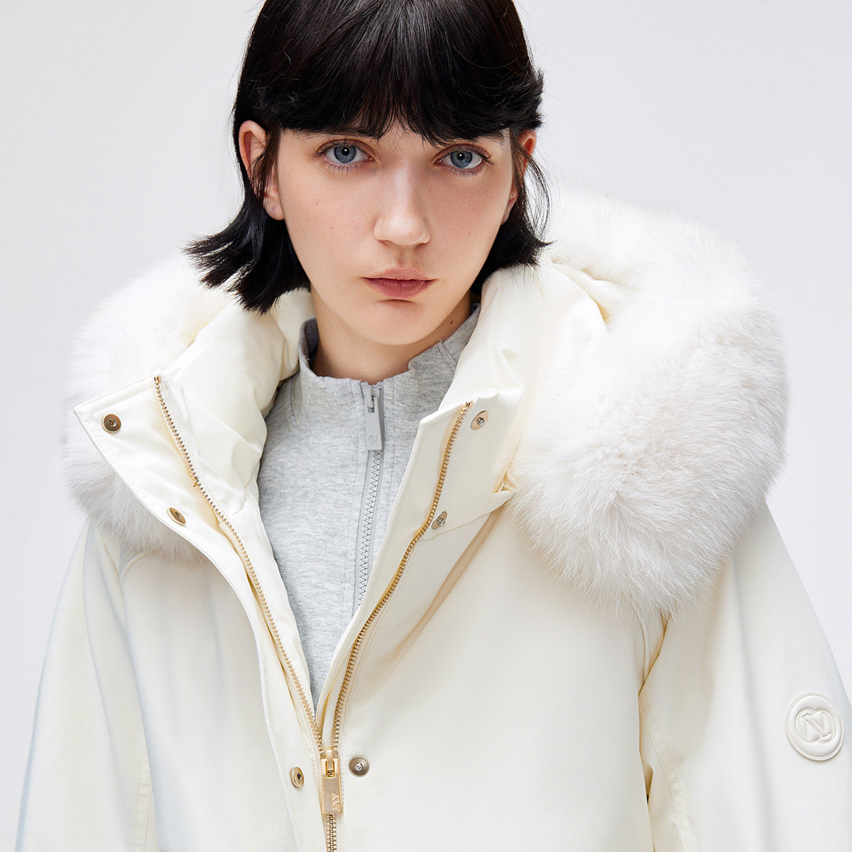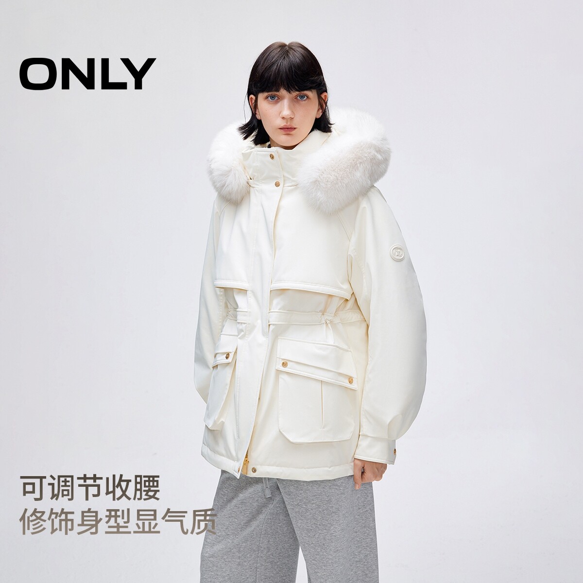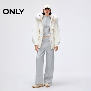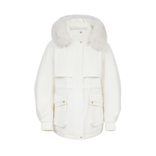 绫致ONLY冬季 白鹅绒可拆卸毛领连帽派克羽绒服女 新款