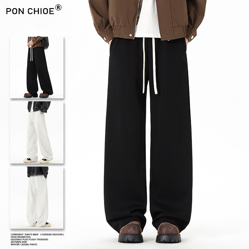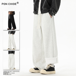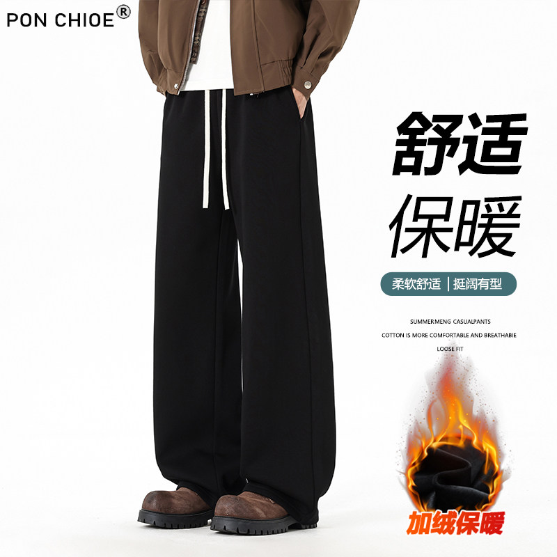 ponchioe秋冬潮牌简约拼接加绒直筒卫裤 男潮流宽松百搭运动休闲裤