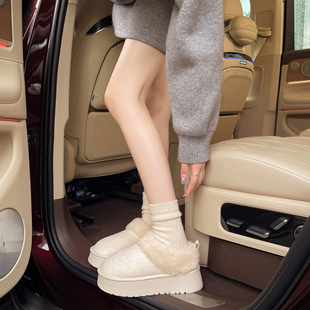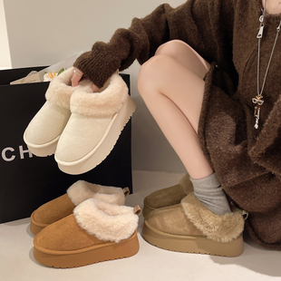 加绒东北大棉鞋 冬季 2025年新款 白色厚底皮毛一体保暖雪地靴子女鞋