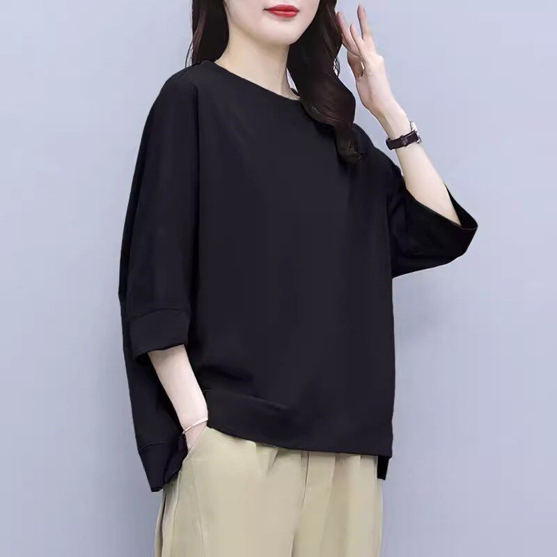 春装 时尚 上衣胖mm显瘦2025新款 夏装 七分袖 洋气漂亮小衫 t恤女大码