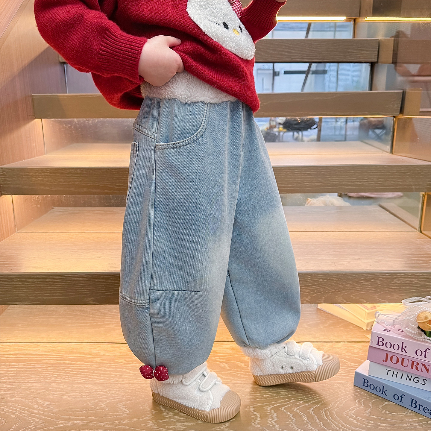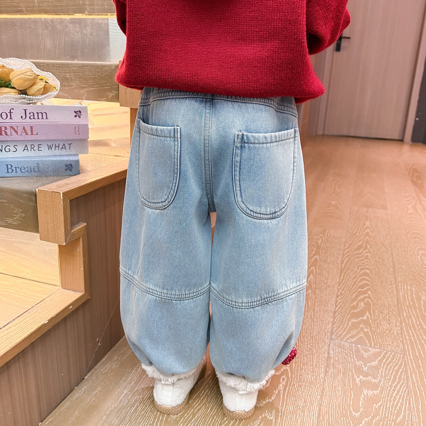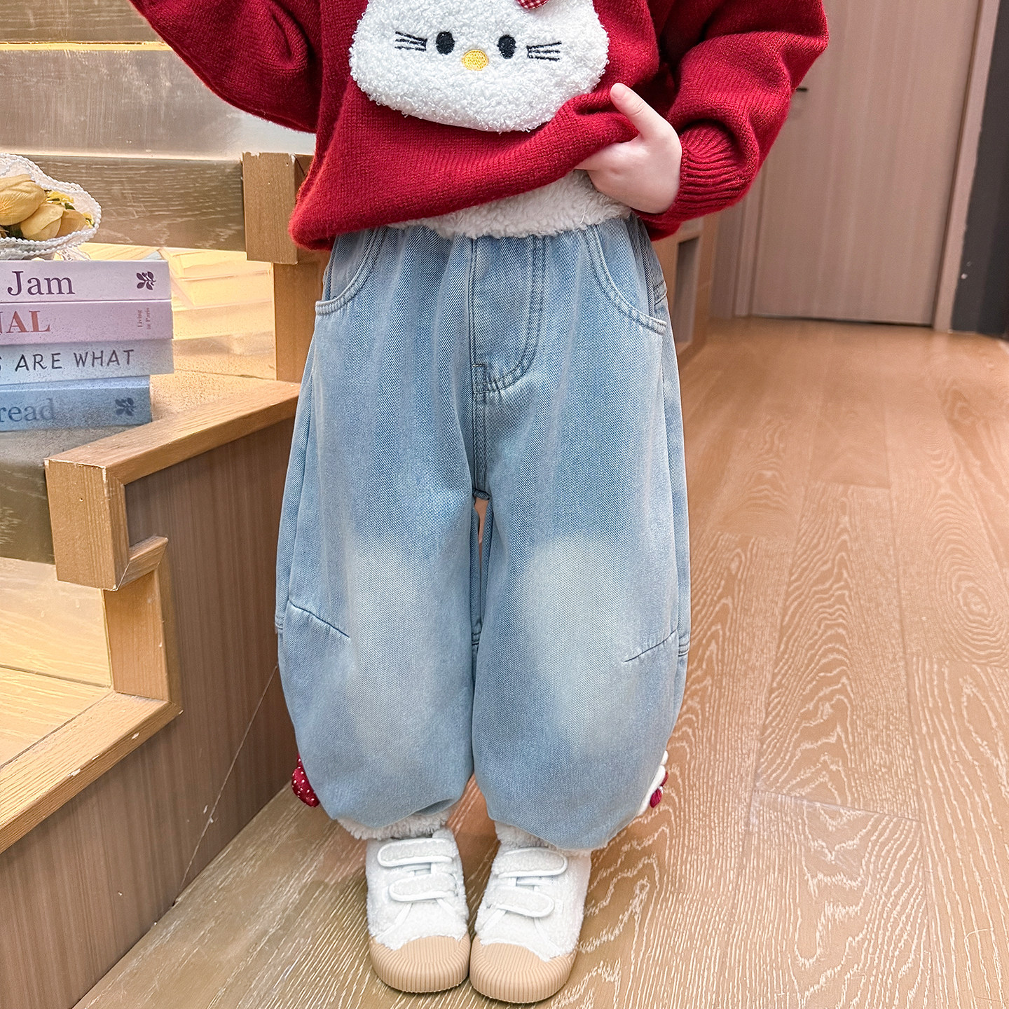 复古长裤 KPP真维斯牛仔裤 子加绒烟管直筒裤 休闲高腰裤 女士 女冬季
