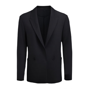 潮流百搭休闲翻领短款 男士 夹克西服上衣 黑色垫肩小西装 王嘉尔同款