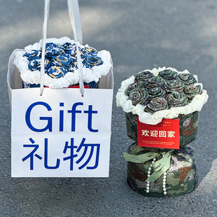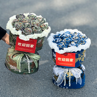 创意退伍礼物手工迷彩玫瑰花束欢迎回家送男朋友兵哥哥接站探亲