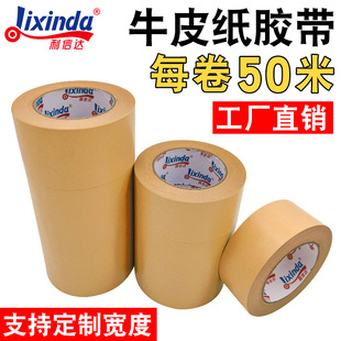 牛皮纸胶带免水强力高粘封箱包装 裱画相框专用黄色牛皮纸质胶纸可手撕50米大卷棕色封口胶