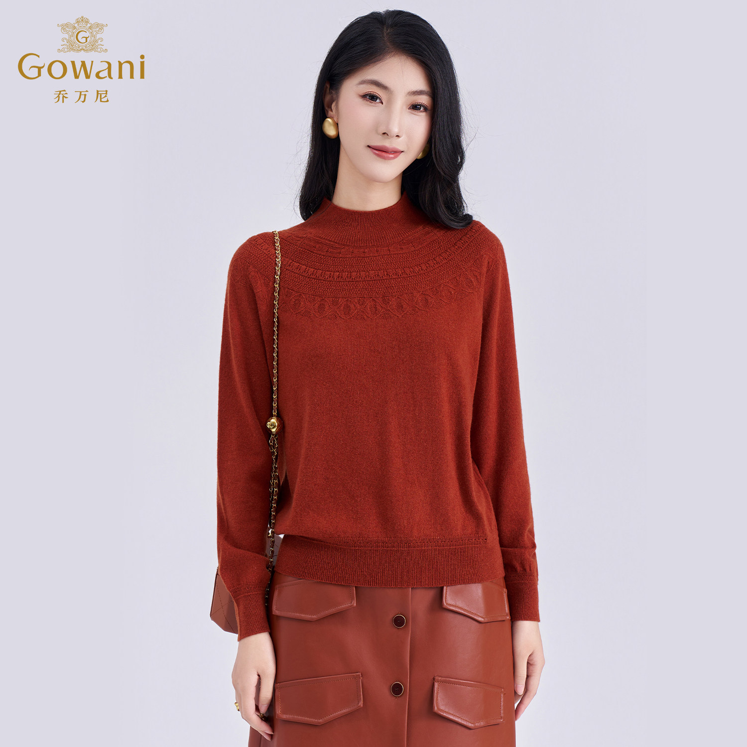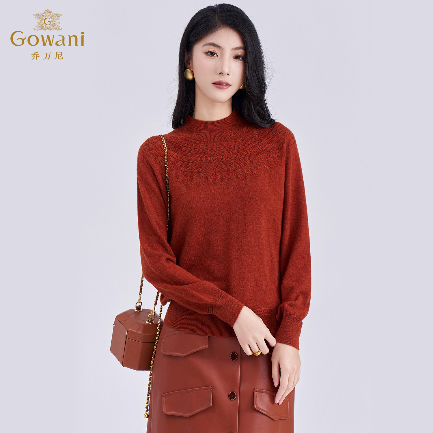 ED4M812 套头百搭针织打底衫 简约风半高领绵羊毛衫 女红色长袖