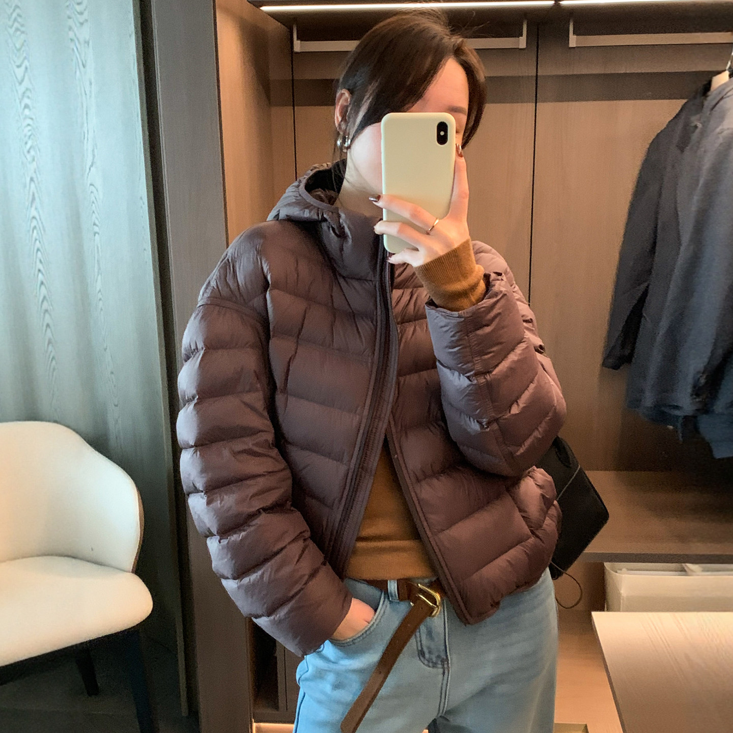 短款 欧货女装 上衣潮 新款 复古连帽排骨羽绒服外套女欧洲站2025冬装