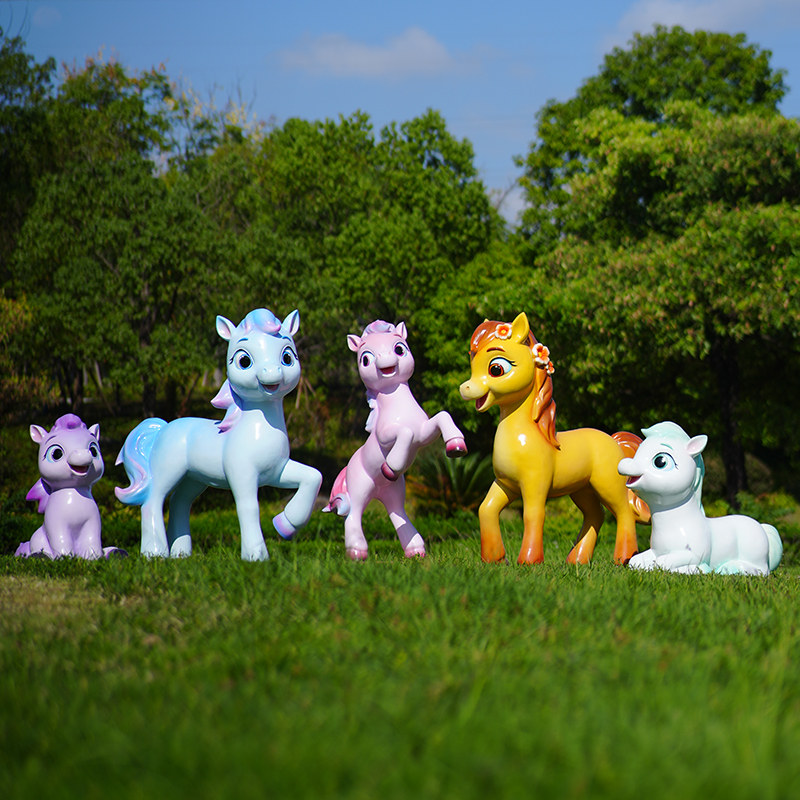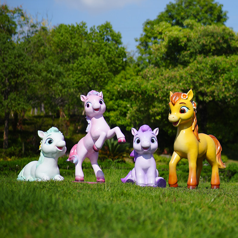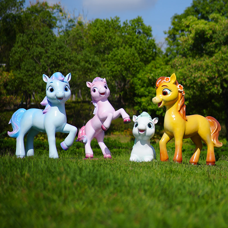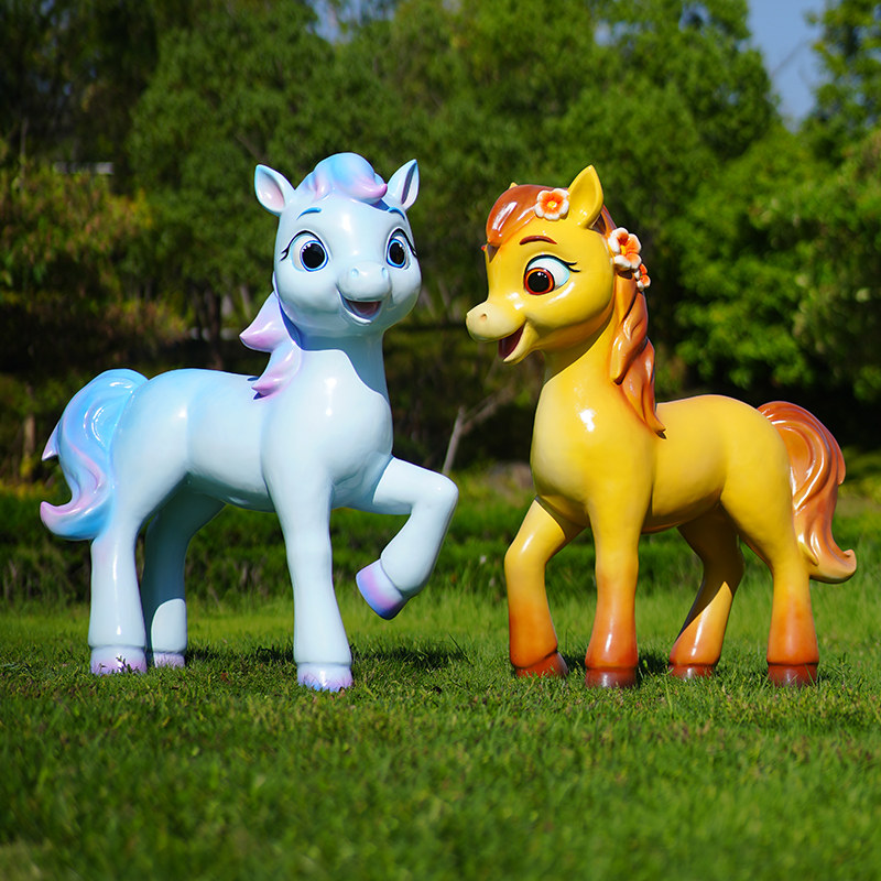 户外玻璃钢生肖可爱卡通小马装 饰摆件幼儿园林景区公园草坪马雕塑