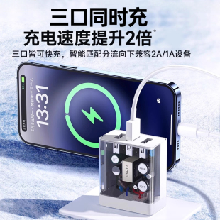 铂信充电器三合一线100w数据线充电头一拖三多功能多头三头100w充电线快充USB适用苹果安卓手机通用typec插头