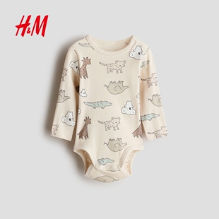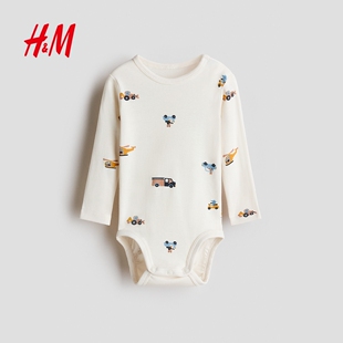 印花棉质哈衣连体衣1316345 新款 HM童装 男婴女婴连身衣2026春季