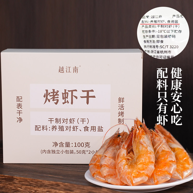 越江南烤虾干即食对虾大号特大干虾孕妇儿童高钙补钙开袋零食干货