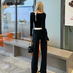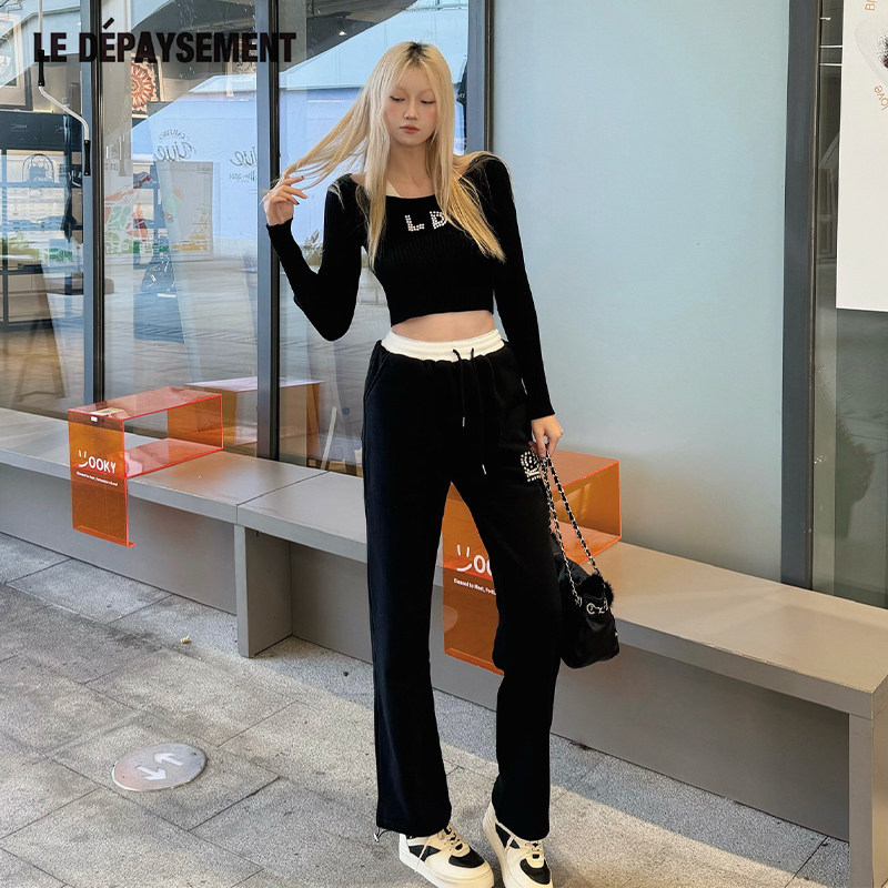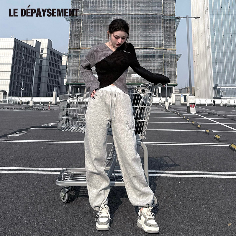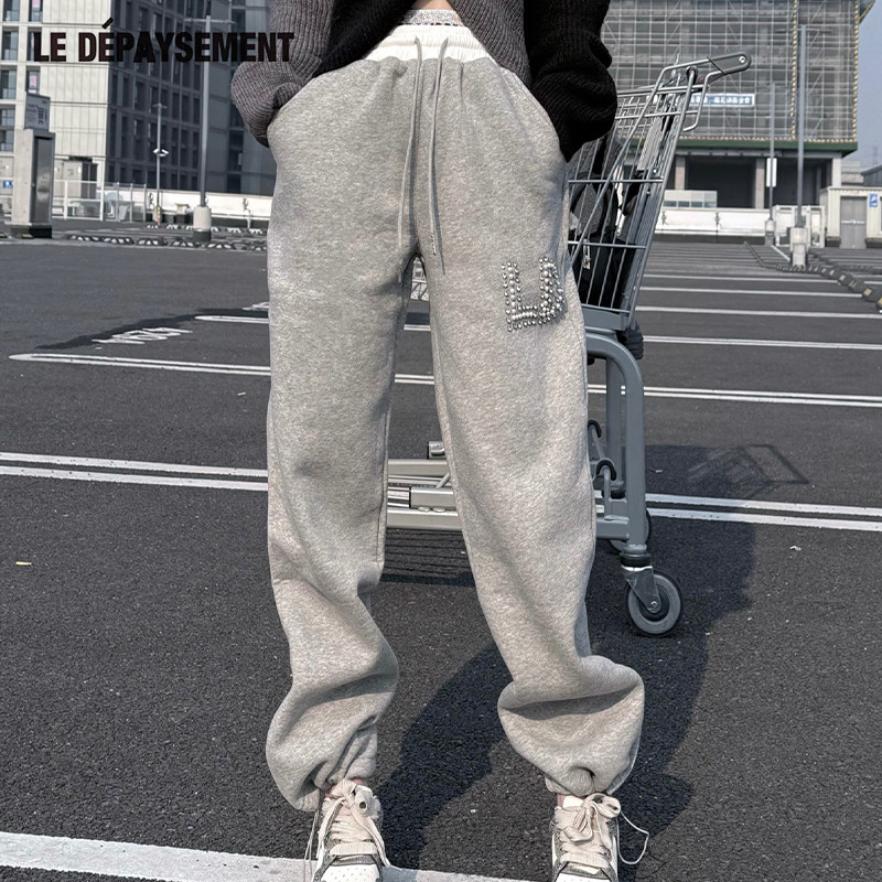 抽绳宽松显瘦束脚加绒卫裤 Depaysement闪闪腰带珍珠logo休闲裤