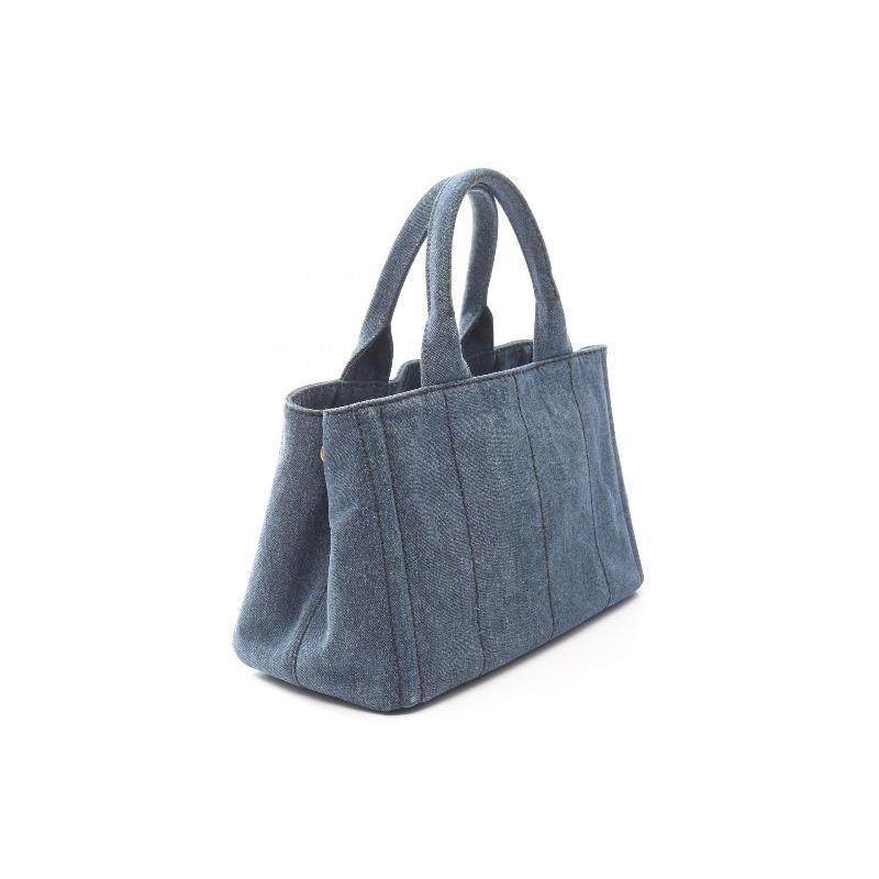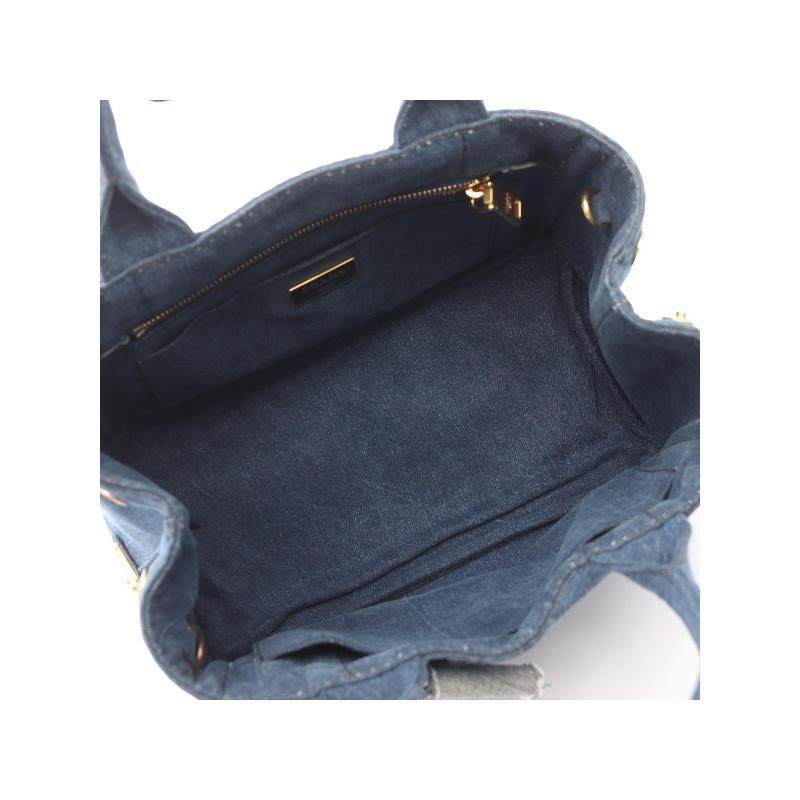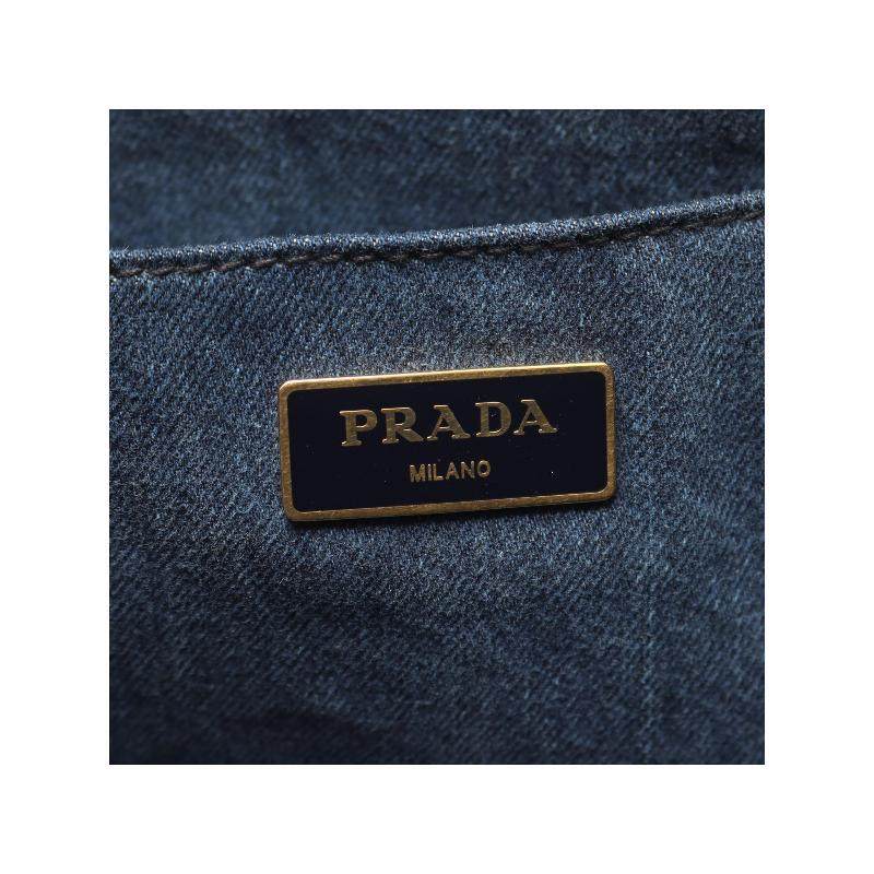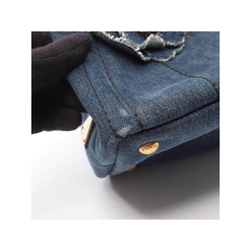 中古Prada普拉达女包B级9新tote bag托特包牛仔布斜挎包蓝色