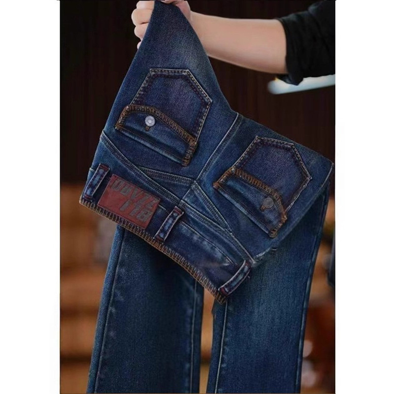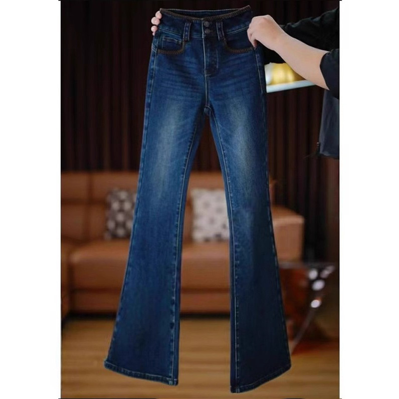 显瘦百搭裤 新款 女2025冬季 李李服饰加绒深色高腰不贴腿喇叭牛仔裤