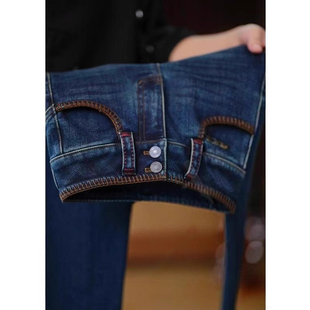双扣高腰显瘦百搭长裤 李李服饰韩漫掐腰加绒微喇牛仔裤 女2025冬季