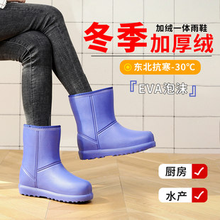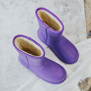 不累脚 女保暖防滑雨靴中筒超轻泡沫厨房防水水鞋 冬季 加绒一体雨鞋