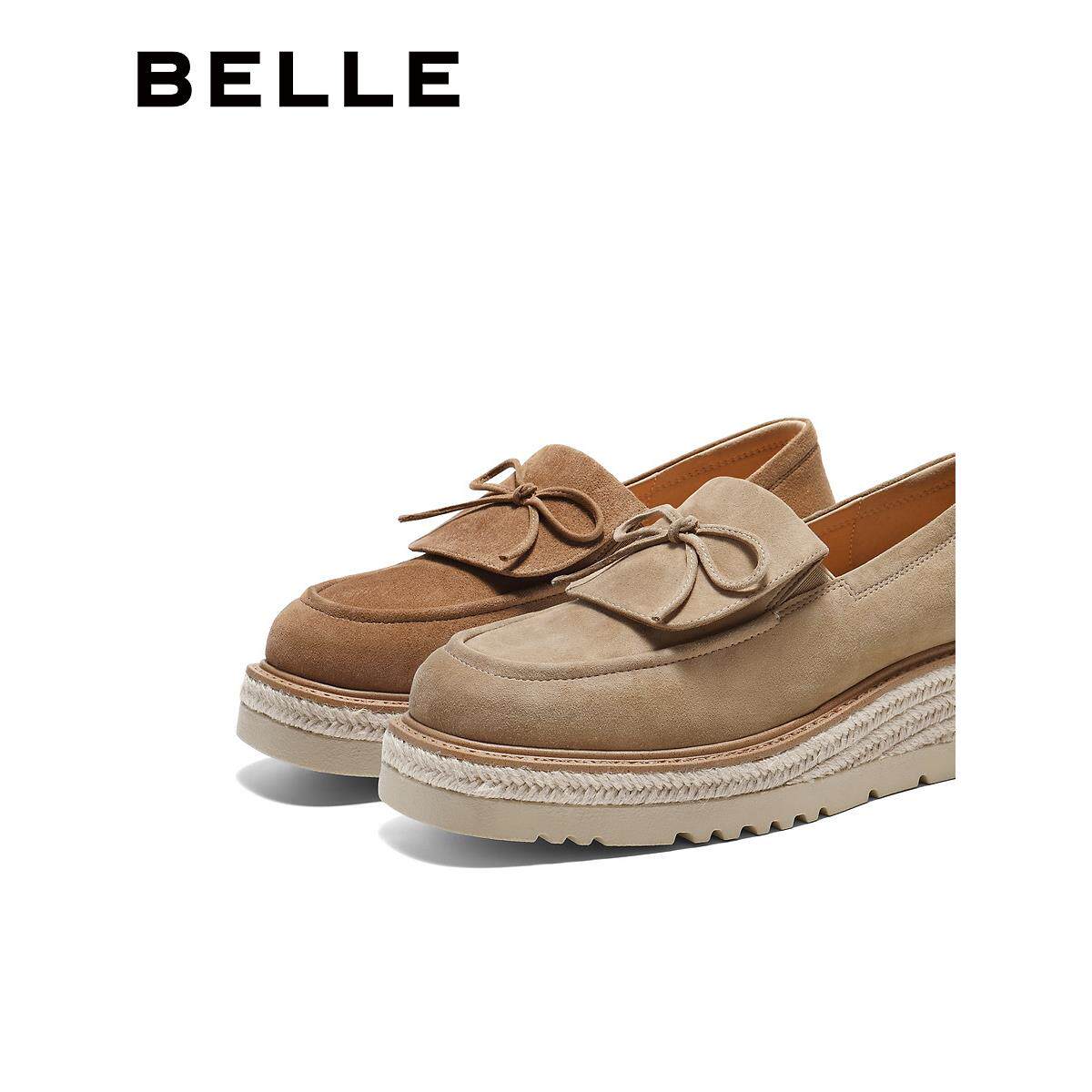 绒面乐福鞋 F2E1 女鞋 通勤单鞋 F2F1DAA6 2026春新款 百丽厚底渔夫鞋