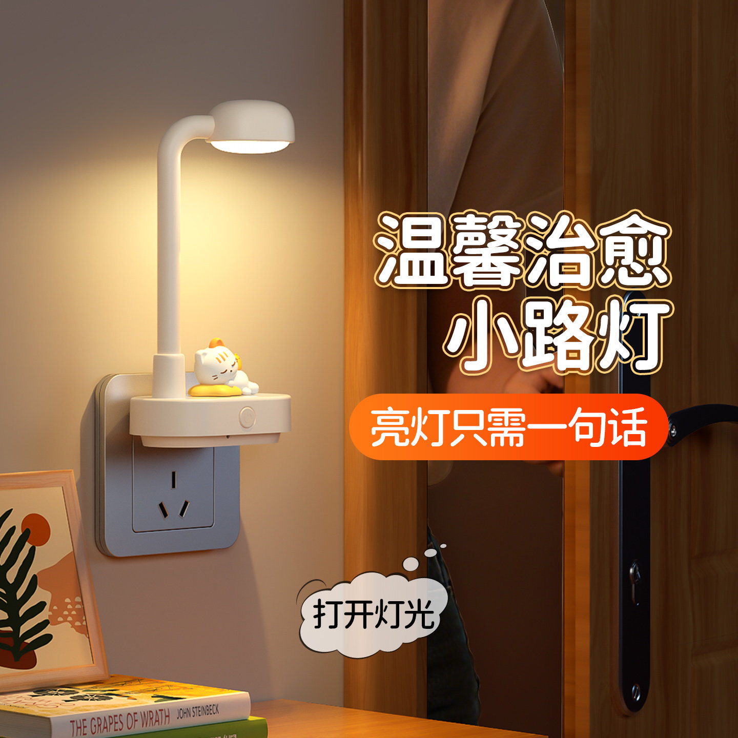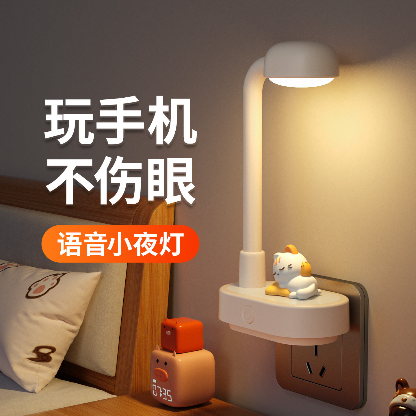 插电小夜灯卧室睡眠灯柔光儿童伴睡灯护眼智能语音声控懒人床头灯