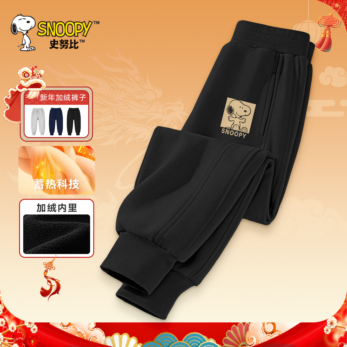 儿童黑色加厚运动裤 史努比男童加绒裤 卫裤 男大童冬季 冬 子马年长裤