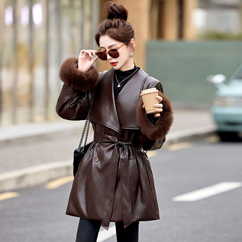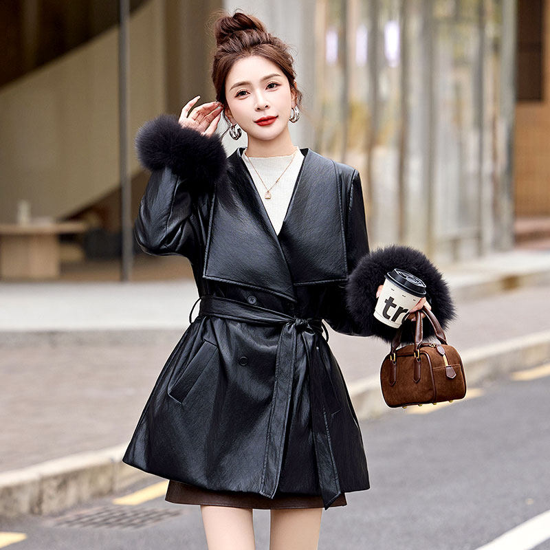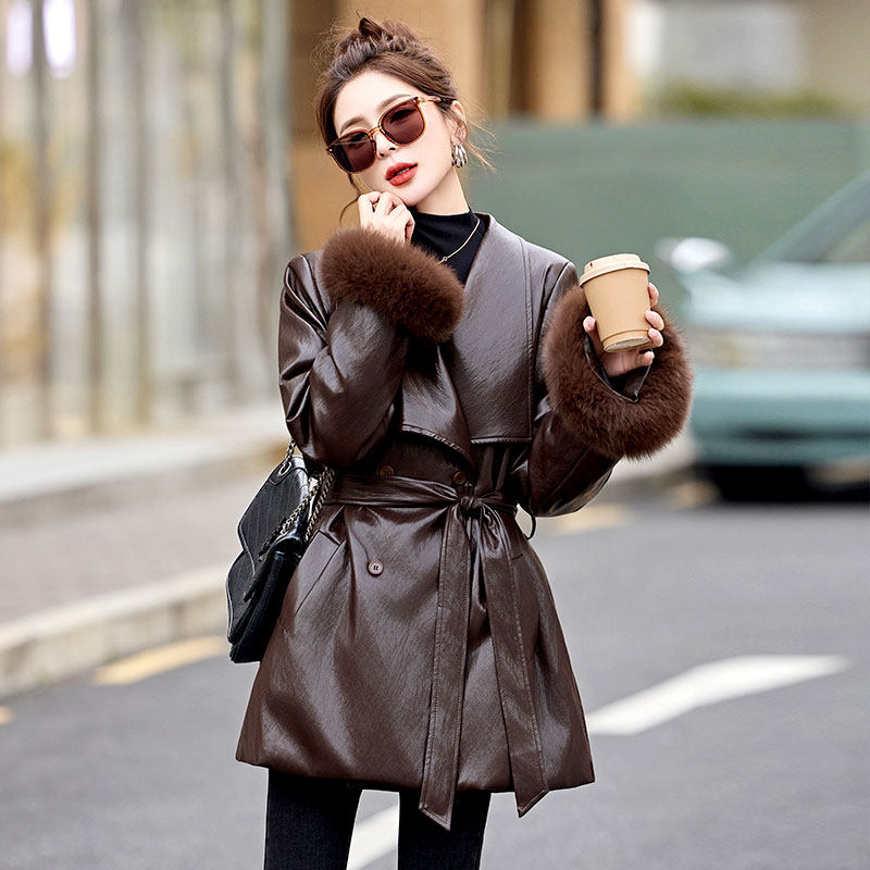 今年流行爆款 西装 外套2025新款 冬装 领PU皮衣免洗90羽绒服女中长款