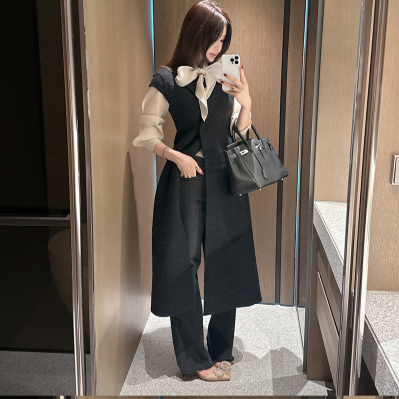 气质内搭女叠穿背心打底百搭 衬衫 法式 V领木耳花边丝滑缎面无袖