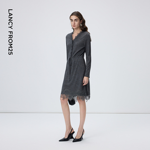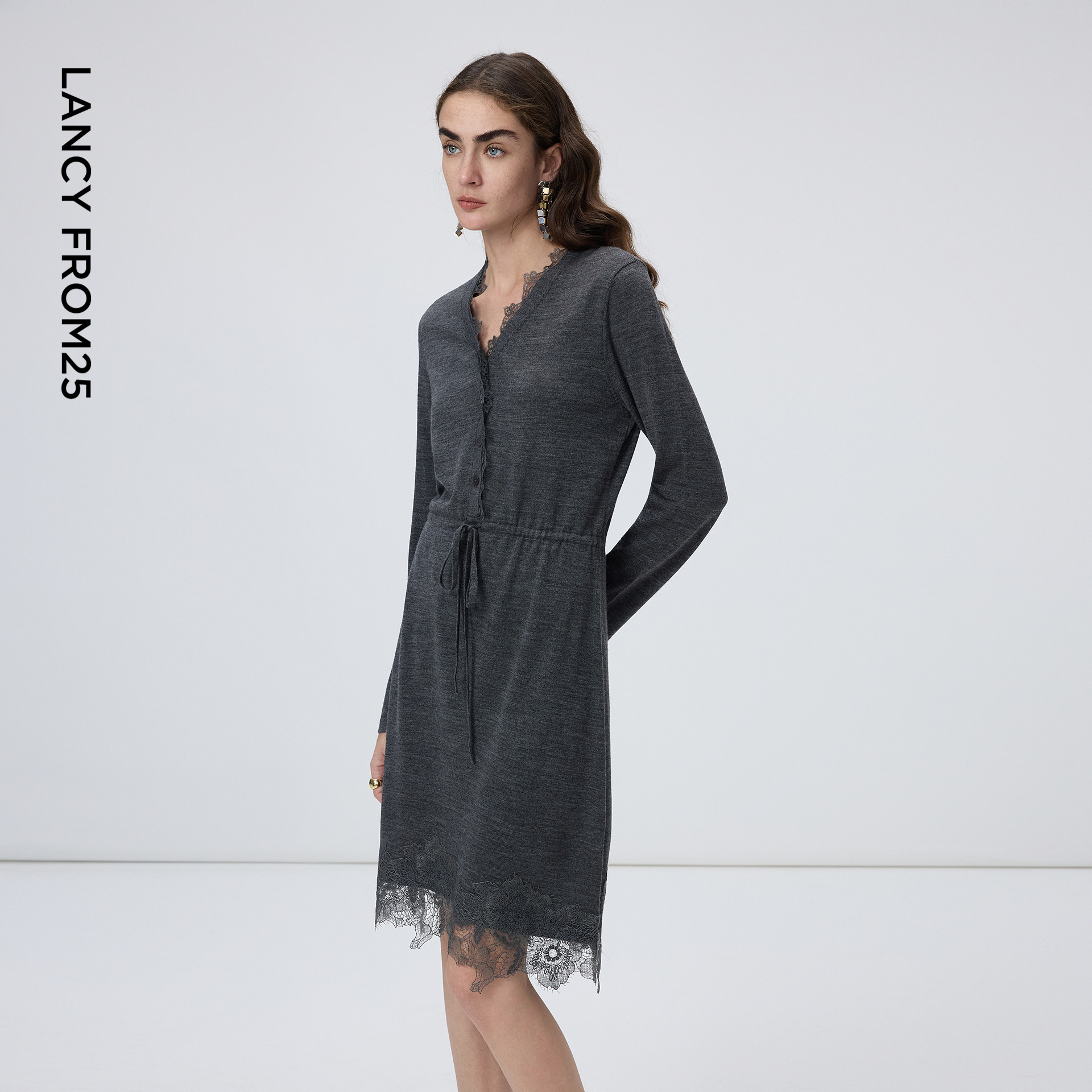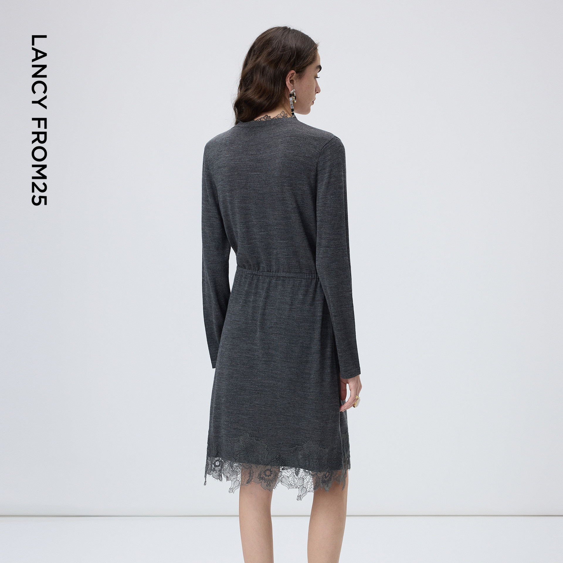 羊毛法式 珂莱蒂尔2025冬新款 木耳边收腰连衣裙可内搭 星光针织