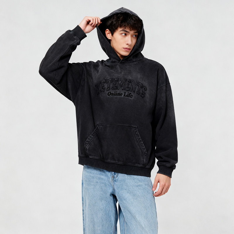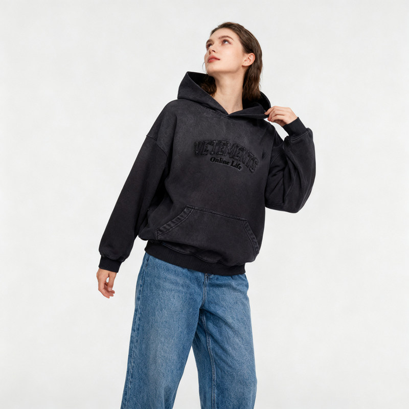 VETEMENTS秋冬男女款 水洗工艺高克重休闲连帽卫衣银泰百货301446