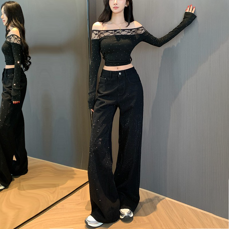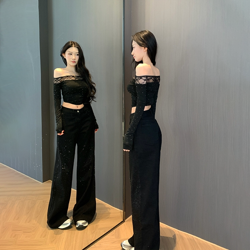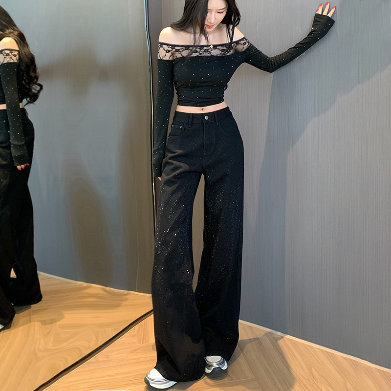 STYLE阔腿牛仔裤 小个子拖地长裤 女2025秋新款 直筒裤 高腰窄版